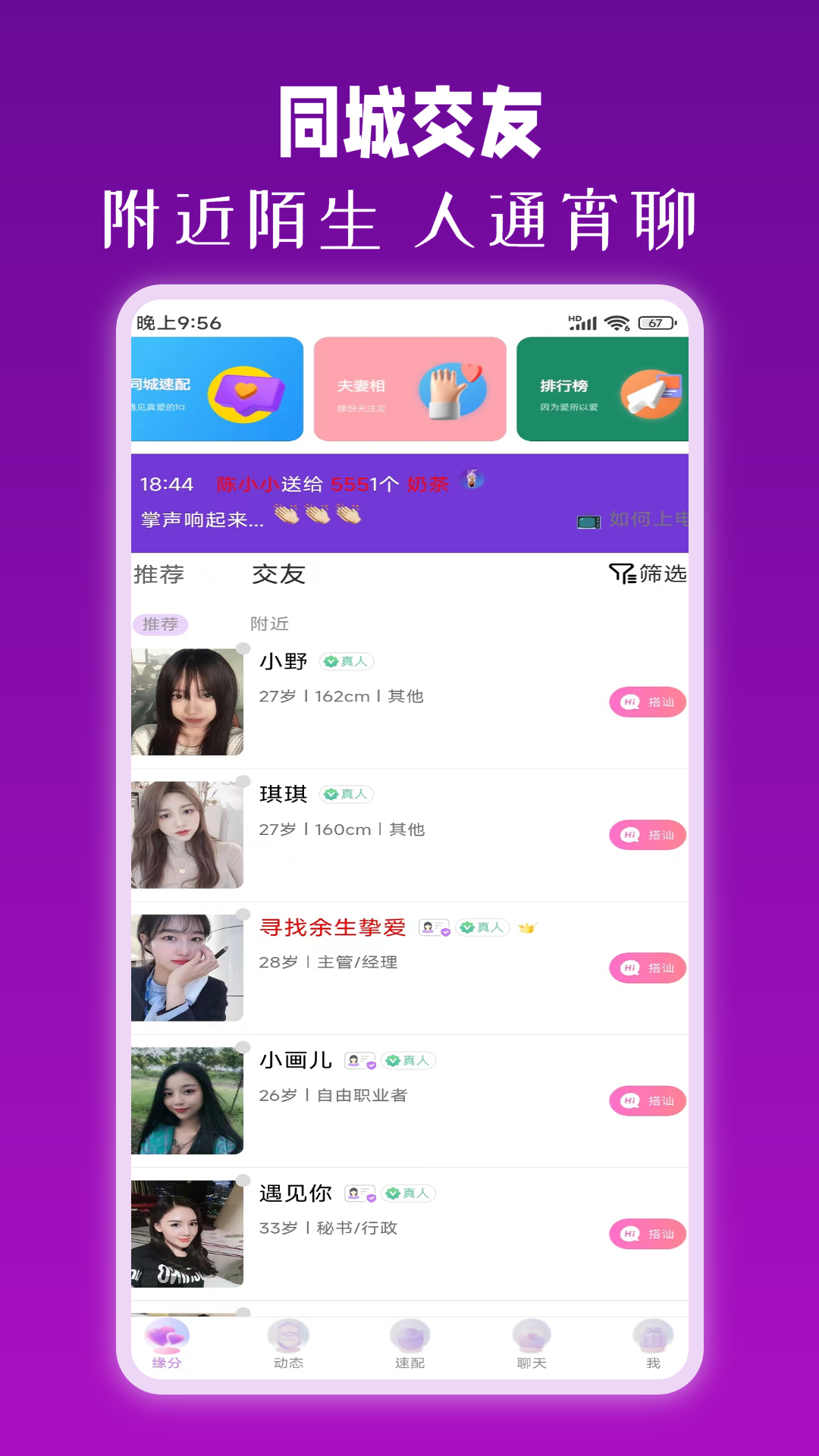 一款同城优质单身视频聊天交友软件,不管本地还是异地的,24小时在线呵护聊天,随时随地快速恋爱交友! 专为千万实名男女打造,视频聊天、聊天、交友、语音交友、脱单交友、恋爱视频聊天、同城约会,语音视频、你想要的这里全都有!